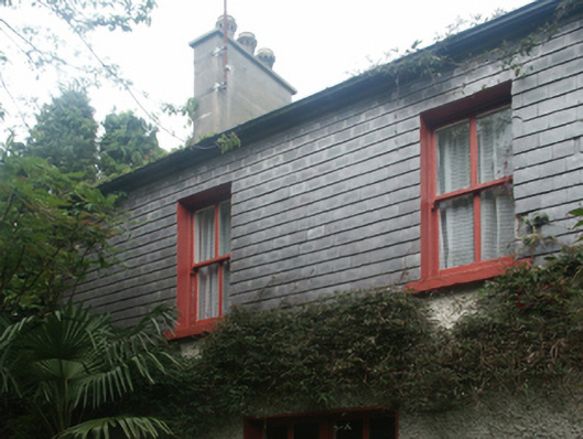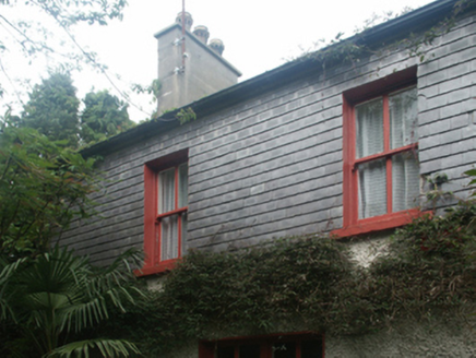 Attached three-bay two-storey house, extant 1882, on an F-shaped plan centred on single-bay single-storey gabled projecting porch abutting single-bay two-storey projecting end bay. Occupied, 1911. Subdivided, ----, producing present composition. Hipped slate roof on an L-shaped plan with terracotta ridge tiles, rendered chimney stacks having rendered capping supporting terracotta or yellow terracotta octagonal pots, and replacement uPVC rainwater goods on roughcast eaves. Roughcast walls bellcast over rendered plinth. Bisected segmental-headed central door opening with concealed dressings framing glazed timber panelled door having fanlight. Lancet window opening (first floor) with cut-granite sill, Y-mullion, and concealed dressings framing timber casement windows. Square-headed window openings in bipartite arrangement (east) with cut-granite sills, timber mullions, and concealed dressings framing one-over-one timber sash windows. Square-headed window openings in tripartite arrangement (west) with cut-granite sills, moulded mullions, and rendered surrounds framing eight-over-eight timber sash windows having casement sidelights. Set in landscaped grounds.