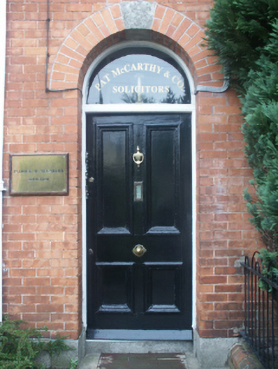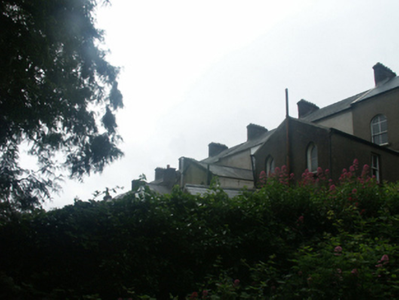End-of-terrace three-bay three-storey townhouse, built 1892, on a rectangular plan. Occupied, 1901; 1911. Refenestrated, ----. One of a terrace of eight. Pitched slate roof with clay ridge tiles, coping to gables with red brick Running bond chimney stacks to apexes having corbelled stepped capping supporting yellow terracotta pots, and cast-iron rainwater goods on decorative timber eaves boards on timber consoles on terracotta stringcourse. Red brick Running bond wall to front (south) elevation on rendered chamfered plinth; rendered surface finish (remainder). Round-headed door opening (east) with cut-granite step threshold, and red brick voussoirs centred on cut-granite keystone framing timber panelled door having overlight. Square-headed window openings with cut-granite sills, and cut-granite lintels framing replacement uPVC casement windows replacing one-over-one timber sash windows. Set back from line of street with cast-iron colonette piers to perimeter having polygonal capping supporting crocketed cast-iron gate.