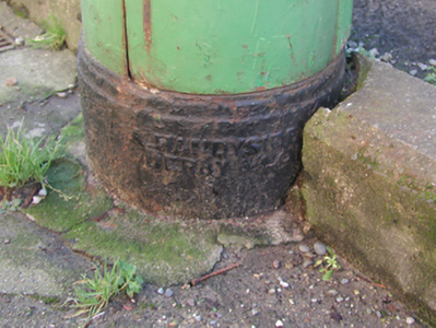 A "pillar box" post box supplied by A. [Andrew] Handyside and Company (established 1848) of Derby and London representing an interesting example of mass-produced cast-iron work making a pleasing, if largely inconspicuous visual statement in an urban street scene with embellishments identifying the artistic potential of the composition including the Queen Victoria (1819-1901; r. 1837-1901) royal cipher of additional significance as an imprinted reminder of the period when Ireland formed part of the British Empire.