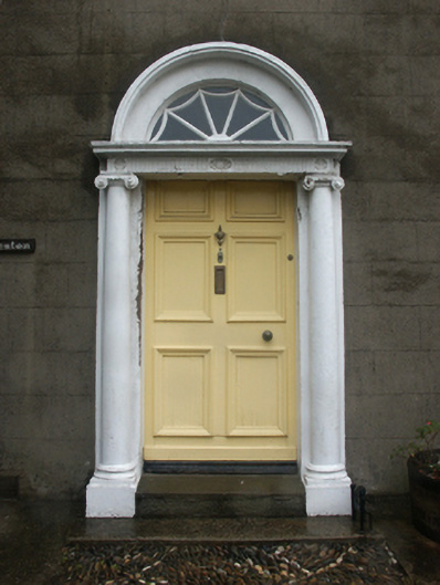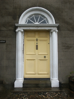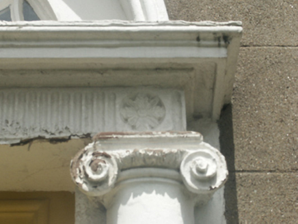 Detached three-bay two-storey house, extant 1840, on a rectangular plan with three-bay two-storey rear (north) elevation. Reroofed, ----. Replacement hipped artificial slate roof with ridge tiles, rendered red brick Running bond chimney stacks having corbelled stepped chamfered capping supporting yellow terracotta pots, and uPVC rainwater goods on rendered cut-granite eaves. Part creeper- or ivy-covered rendered, ruled and lined walls. Segmental-headed central door opening with two cut-granite steps supporting wrought iron-detailed cast-iron bootscrapers, doorcase with engaged Ionic columns on plinths supporting "Cyma Recta"- or "Cyma Reversa"-detailed shallow cornice on rosette-detailed fluted frieze framing timber panelled door having fanlight. Square-headed window openings including square-headed window openings to rear (north) elevation centred on square-headed window opening (half-landing) with cut-granite sills, and concealed dressings framing eight-over-eight timber sash windows with eight-over-eight timber sash windows to rear (north) elevation centred on eight-over-twelve timber sash window. Interior including (ground floor): central hall retaining carved timber surrounds to door openings framing timber panelled doors; and carved timber surrounds to door openings to remainder framing timber panelled doors with timber panelled shutters to window openings. Set back from line of street with wrought iron railings to perimeter centred on cut-granite monolithic piers supporting wrought iron gate.