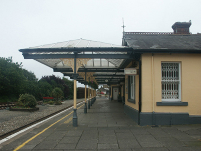 A railway station erected by the Dublin, Wicklow and Wexford Railway (DWWR) Company representing an important component of the late nineteenth-century built heritage of Wexford with the architectural value of the composition, one superseding a series of makeshift accommodations dating back to a temporary terminus opened (1882) in nearby Carcur, suggested by such attributes as the symmetrical footprint centred on restrained doorcases; and the decorative timber work embellishing the roofline: meanwhile, a canopy supplied (1891) by the Thompson Brothers Engineers and Contractors Company of Wexford pinpoints the engineering or technical potential of the composition. Having been well maintained, the elementary form and massing survive intact together with substantial quantities of the original fabric, both to the exterior and to the interior, thus upholding the character or integrity of a railway station making a pleasing visual statement in an urban street scene.
