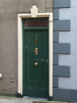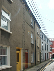 Terraced single-bay three-storey house, extant 1903, on a rectangular plan. One of a terrace of five. Pitched slate roof with clay ridge tiles, rendered chimney stack (east) having concrete capping supporting terracotta pots, and cast-iron rainwater goods on rendered slate flagged eaves retaining cast-iron downpipe. Rendered, ruled and lined wall to front (north) elevation on rendered plinth with rusticated rendered piers to ends. Square-headed door opening (east) with cut-limestone threshold, and moulded rendered surround centred on keystone framing timber panelled door having overlight. Square-headed window openings with cut-granite sills, and rendered "bas-relief" surrounds framing one-over-one timber sash windows. Street fronted with concrete footpath to front.