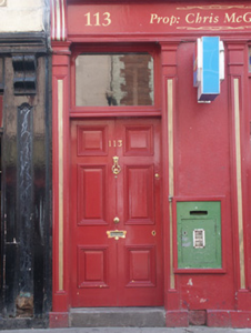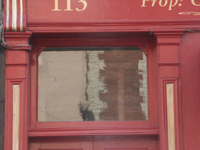 Terraced three-bay three-storey red brick house with dormer attic, built 1907, with shopfront to ground floor. Extensively renovated, 1993, with dormer attic added. One of a pair. Pitched (shared) roof (gabled to dormer attic window, 1993) with replacement artificial slate, 1993, clay ridge tiles, red brick Flemish or Running bond chimney stack having yellow brick stringcourses, stepped capping supporting terracotta or yellow terracotta pots, and cast-iron rainwater goods on moulded red brick eaves having iron ties retaining cast-iron square-profiled downpipe. Red brick Flemish bond walls with yellow brick dressings including quoins to ends, stringcourses to each floor, moulded red brick stringcourse to top floor, red brick stringcourse supporting yellow brick Flemish bond frieze, and moulded red brick cornice. Camber-headed window openings to first floor with square-headed window openings to top floor having cut-granite sills, yellow brick 'quoined' chamfered surrounds rising into red and yellow brick voussoirs (red brick hood mouldings over to first floor; moulded red brick stringcourse to top floor), and replacement uPVC casement windows, 1993. Timber shopfront to ground floor with panelled (hollow) pilasters on cut-stone padstones, replacement fixed-pane display windows, 1993, on panelled risers incorporating spandrels forming round-headed openings having overlights, glazed timber panelled door having overlight, timber panelled door to house on cut-granite step having overlight incorporating spandrels, fascia having fluted consoles, and moulded cornice. Street fronted with concrete footpath to front [VO].