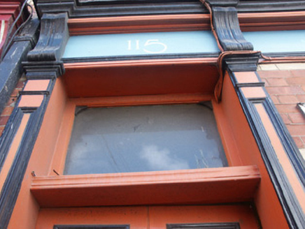 A well composed house of the middle size built by Mrs. Mary O'Connor (1837-1927), contractor, as one of an identical pair (with 15502011) recalling a contemporary (between 1900-10) development in Main Street South (see 15505006 - 07) making a distinctive impression in the street scene on account of the lively construction in red brick with yellow brick dressings producing a polychromatic visual effect redolent of the period of construction: supplementary attributes, including the elegant swept profile of some openings featuring decorative surrounds, the moulded dressings in the Classical manner, and so on, all further enliven the architectural design appeal of the composition. Having been very well maintained, the house continues to present an early aspect with the original fabric surviving largely intact, both to the exterior and to the interior including a Classically-detailed shopfront of artistic design distinction displaying good quality craftsmanship together with the remains of an early commercial interior.