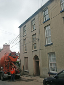 A very well appointed house of the middle size built as one of a group of two related houses (with 15502016) making a positive contribution to the streetscape value of George's Street Lower with the diminishing in scale of the openings on each floor in the Classical manner producing an elegant tiered visual effect in the composition: meanwhile, a finely-detailed doorcase displaying expert carpentry or craftsmanship further enlivens the sparse design aesthetic of the house. Although having fallen into slight disrepair following a period out of use, the house continues to present an early aspect with the elementary attributes surviving in place together with most of the historic fabric, both to the exterior and to the interior including the sash-and-overlight glazing pattern recognized as a characteristic particular to Wexford Town and the environs (see also 15503092).