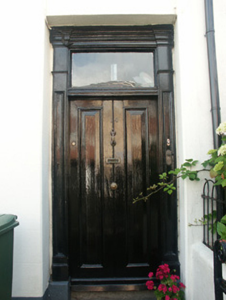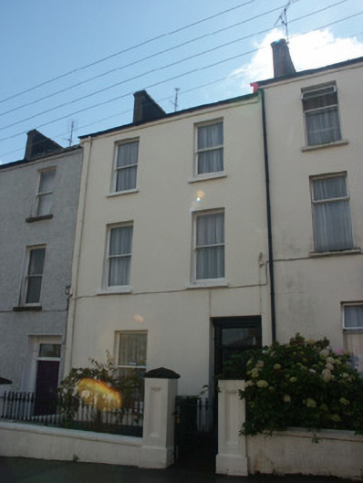 Terraced two-bay three-storey house, built 1883. One of a terrace of four forming part of a group of seven. Pitched slate roof with clay ridge tiles, rendered (shared) chimney stacks having profiled or stepped capping, and replacement uPVC rainwater goods on rendered eaves having iron ties retaining cast-iron downpipe. Rendered, ruled and lined walls. Square-headed window openings with cut-stone sills, and one-over-one timber sash windows. Square-headed door opening with cut-granite step, timber panelled (hollow) pilaster doorcase on cut-granite padstones, and timber panelled door having overlight. Interior with timber panelled shutters to window openings. Set back from line of street with rendered plinth having cut-granite coping supporting iron railings incorporating cast-iron finials, rendered panelled piers having carved cut-granite capping, and iron gate incorporating cast-iron finials [VO].