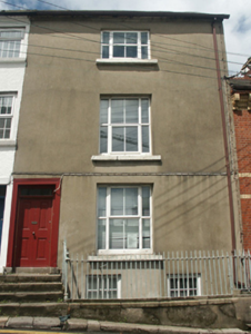 Terraced single-bay three-storey over part raised basement townhouse, extant 1840, on a rectangular plan. Renovated, ----, to accommodate alternative use. Pitched slate roof with clay ridge tiles, and replacement uPVC rainwater goods on rendered red brick header bond stepped eaves. Rendered walls. Square-headed door opening (south) approached by flight of four cut-granite steps supporting wrought iron bootscraper, carved timber surround on cut-granite padstones framing timber panelled door having overlight. Paired square-headed window openings (basement) with cut-granite sills, and concealed dressings framing six-over-six timber sash windows having part exposed sash boxes. Square-headed central window openings originally in tripartite arrangement with cut-granite sills, and concealed dressings framing replacement uPVC casement windows replacing six-over-six or six-over-three (top floor) timber sash windows having two-over-two or two-over-one (top floor) sidelights. Interior including (ground floor): hall retaining timber surrounds to door openings framing timber panelled doors, staircase on a dog leg plan with turned timber "spindle" balusters supporting carved timber banister terminating in paired turned timber newels, and timber surrounds to door openings to landings framing timber panelled doors; and timber surrounds to door openings to remainder framing timber panelled doors with timber surrounds to window openings framing timber panelled reveals or shutters. Street fronted with wrought iron railings to perimeter.