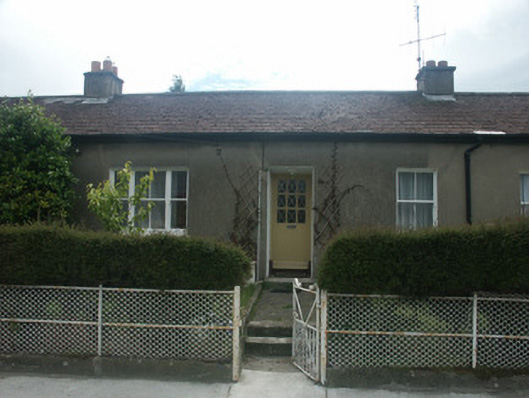 Terraced three-bay single-storey local authority house, built 1930. One of a terrace of six. Pitched (shared) roof with red fibre-cement slate having chamfered corners, clay ridge tiles, rendered (shared) chimney stacks, and cast-iron rainwater goods on timber eaves. Rendered walls. Square-headed window openings with one in tripartite arrangement having concrete sills, and two-over-two timber sash windows having one-over-one sidelights to tripartite opening. Square-headed door opening with step, and glazed tongue-and-groove timber panelled door. Set back from street in own grounds with plinth supporting iron railings, and flat iron gate [VO].