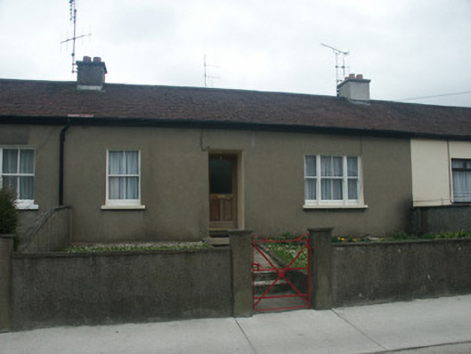 Terraced three-bay single-storey local authority house, built 1930. One of a terrace of six. Pitched (shared) roof with red fibre-cement slate having chamfered corners, clay ridge tiles, rendered (shared) chimney stacks, and cast-iron rainwater goods on timber eaves. Rendered walls. Square-headed window openings with one in tripartite arrangement having concrete sills, and two-over-two timber sash windows having one-over-one sidelights to tripartite opening. Square-headed door opening with replacement glazed timber panelled door, pre-1993. Set back from street in own grounds with rendered boundary wall having coping, rendered piers having capping, and flat iron gate [VO].