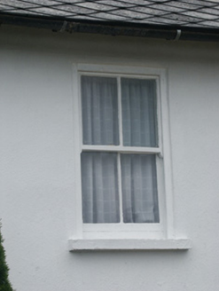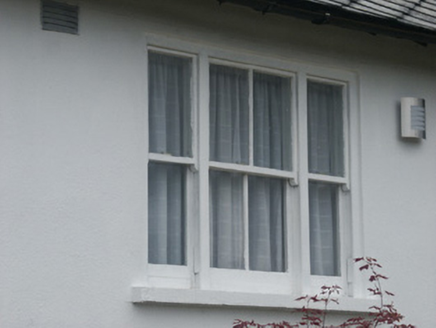 End-of-terrace four-bay single-storey local authority house, built 1927. One of a terrace of six forming part of a group of twelve. Hipped and pitched (shared) roof with asbestos or fibre-cement slate laid in diagonal courses, clay ridge tiles, rendered chimney stacks, and iron rainwater goods on slightly overhanging exposed timber eaves. Rendered walls. Square-headed window openings with one in tripartite arrangement having concrete sills, and two-over-two timber sash windows having one-over-one sidelights to tripartite opening. Square-headed door opening with concrete step, and glazed timber panelled door. Set back from street in own grounds with plinth to forecourt supporting iron railings, and flat iron gate [VO].