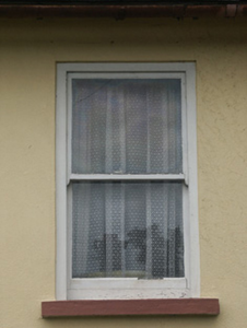 Terraced four-bay single-storey local authority house, built 1927. One of a terrace of six forming part of a group of twelve. Pitched (shared) roof with asbestos or fibre-cement slate laid in diagonal courses, clay ridge tiles, rendered chimney stacks, and iron rainwater goods on slightly overhanging exposed timber eaves. Rendered walls. Square-headed window openings with one in tripartite arrangement having concrete sills, and one-over-one timber sash windows having one-over-one sidelights to tripartite opening. Square-headed door opening with concrete step, and replacement glazed timber door, c.1975. Set back from street in own grounds with plinth to forecourt supporting iron railings, and flat iron gate [VO].