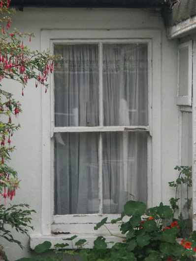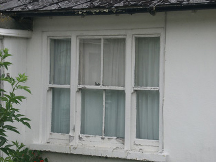 Terraced four-bay single-storey local authority house, built 1927. Renovated, c.1975, with single-bay single-storey flat-roofed projecting glazed porch added. One of a terrace of six forming part of a group of twelve. Pitched (shared) roof with asbestos or fibre-cement slate laid in diagonal courses, clay ridge tiles, rendered chimney stacks, and iron rainwater goods on slightly overhanging exposed timber eaves. Flat bitumen felt roof to porch with rainwater goods on timber eaves. Rendered walls. Square-headed window openings with one in tripartite arrangement having concrete sills, and two-over-two timber sash windows having one-over-one sidelights to tripartite opening. Square-headed openings to porch with fixed-pane timber windows on brick Running bond riser having casement sections, and glazed timber panelled door. Square-headed door opening into house with concrete step, and replacement glazed timber door, c.1975. Set back from street in own grounds with replacement brick Running bond plinth, c.1975, to forecourt supporting iron railings, and iron double gates [VO].