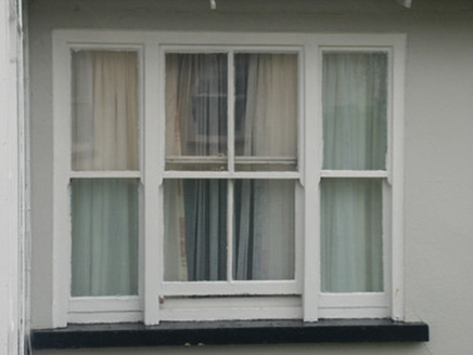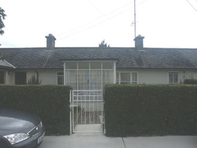 Terraced four-bay single-storey local authority house, built 1927. Renovated, c.1950, with single-bay single-storey flat-roofed projecting glazed porch added. One of a terrace of six forming part of a group of twelve. Pitched (shared) roof with asbestos or fibre-cement slate laid in diagonal courses, clay ridge tiles, rendered chimney stacks, and iron rainwater goods on slightly overhanging exposed timber eaves. Flat bitumen felt roof to porch with rainwater goods on timber eaves. Rendered walls. Square-headed window openings with one in tripartite arrangement having concrete sills, and two-over-two timber sash windows having one-over-one sidelights to tripartite opening. Square-headed openings to porch with fixed-pane timber windows, and glazed timber panelled door having overlight. Square-headed door opening into house with concrete step, and replacement glazed timber door, c.1975. Set back from street in own grounds with hedge boundary to forecourt having iron gate [VO].