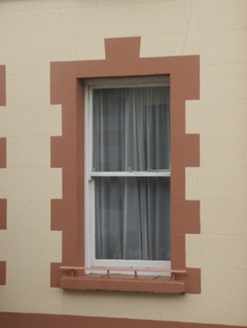 Detached three-bay three-storey townhouse, extant 1840, on a rectangular plan. Part refenestrated, 1988. Pitched slate roof with clay ridge tiles, rendered chimney stacks having capping supporting terracotta pots, and cast-iron rainwater goods on rendered eaves retaining cast-iron downpipes. Rendered, ruled and lined wall to front (south) elevation with rusticated rendered piers to ends; slate hung surface finish (remainder). Square-headed window openings with cut-granite sills, and concealed dressings framing one-over-one timber sash or replacement uPVC casement (top floor) windows. Street fronted with concrete footpath to front.