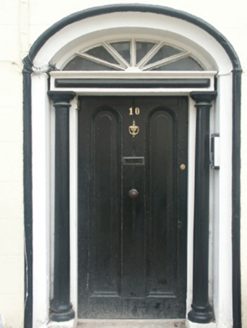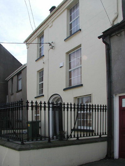 Attached two- or three-bay three-storey house, extant 1840, on a rectangular plan. Renovated, ----, to accommodate alternative use. Pitched slate roof with clay ridge tiles, coping to gables with rendered chimney stacks to apexes having stepped capping supporting terracotta pots, and cast-iron rainwater goods on rendered stepped eaves retaining cast-iron downpipe. Rendered, ruled and lined walls. Segmental-headed central door opening with cut-granite threshold, doorcase with engaged columns on padstones supporting shallow cornice on flush beaded frieze, and moulded rendered surround framing timber panelled door having fanlight. Square-headed window openings with cut-granite sills, and concealed dressings framing replacement uPVC casement windows. Set back from line of street with rendered, ruled and lined boundary wall to perimeter having cut-granite "saddleback" coping supporting crocketed cast-iron railings centred on crocketed cast-iron gate.