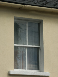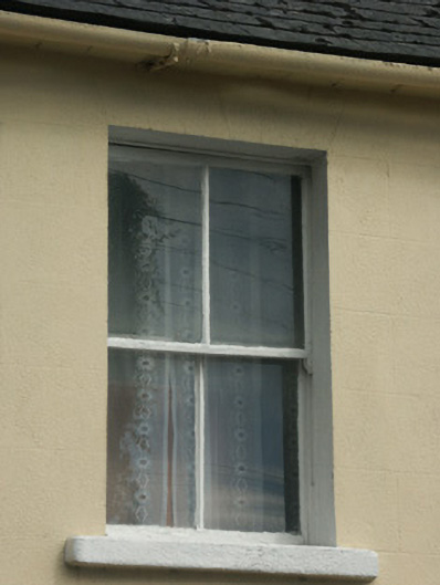 Terraced two-bay two-storey house, c.1875, probably incorporating fabric of earlier house, pre-1840, on site. Reroofed, c.1950. One of a group of three. Pitched (shared) roof with replacement fibre-cement slate, c.1950, terracotta ridge tiles, rendered (shared) chimney stacks having capping supporting terracotta or yellow terracotta pots, rendered coping, and replacement aluminium rainwater goods, c.1950, on rendered eaves having iron ties. Rendered, ruled and lined walls with rendered strip to end. Square-headed window openings with sills, and two-over-two timber sash windows. Square-headed door opening originally elliptical-headed with inscribed relieving arch over incorporating keystone, and replacement timber panelled door, pre-1993. Street fronted with concrete footpath to front.