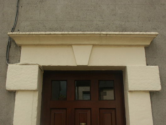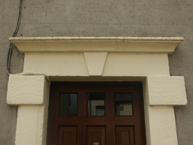 Terraced three-bay two-storey over basement house, extant 1840, on a rectangular plan. One of a terrace of six. Pitched fibre-cement slate roof with ridge tiles, rendered chimney stacks having rendered capping supporting terracotta pots, and replacement uPVC rainwater goods on rendered red brick header bond stepped eaves. Rendered, ruled and lined walls. Square-headed central door opening with cut-granite threshold, and cut-granite block-and-start surround centred on keystone with "Cavetto" hood moulding framing replacement glazed timber panelled door. Square-headed window openings with cut-granite sills, and concealed dressings framing eight-over-eight timber sash windows. Interior including (ground floor): central hall retaining carved timber surrounds framing timber panelled doors, moulded plasterwork cornice to ceiling, staircase on a dog leg plan with turned timber "spindle" balusters supporting carved timber banister terminating in turned timber newels, and carved timber surrounds to door openings to landing framing timber panelled doors; and carved timber surrounds to door openings to remainder framing timber panelled doors. Set back from street with rendered, ruled and lined boundary wall to perimeter having cut-granite coping supporting arrow head-detailed wrought iron railings centred on arrow head-detailed wrought iron gate.