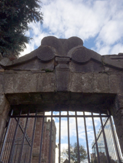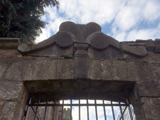 A gateway making a pleasing visual statement at an entrance on to the grounds of Saint Selskar's Church with 'some rustic early seventeenth-century [stone] work' highlighting the archaeological potential of the composition (Craig and Garner 1973, 32).