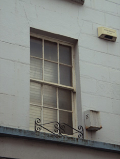 Terraced two-bay three-storey house, c.1825. Reroofed, c.1950. Renovated, post-1996, with replacement shopfront inserted to ground floor. Pitched roof with replacement fibre-cement slate, c.1950, clay ridge tiles, chimney stack(s) not visible, and cast-iron rainwater goods on rendered eaves having iron ties. Rendered, ruled and lined walls with stringcourse to first floor, and rendered channelled piers to ends. Square-headed window openings with cut-stone sills forming sill course to first floor supporting iron sill guards, six-over-six (first floor) and three-over-six (top floor) timber sash windows. Replacement timber shopfront, post-1996, to ground floor on a symmetrical plan with colonette piers on plinths having central fluted pilaster on polished granite riser, fixed-pane display windows, glazed timber door having overlight, timber panelled door to house having overlight, and panelled fascia having lined coping. Interior with timber panelled reveals or shutters to some window openings. Street fronted with concrete footpath to front.