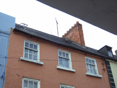 Terraced three-bay three-storey house with dormer attic, c.1775. Renovated, c.1975, with replacement shopfront inserted to ground floor possibly incorporating fabric of earlier shopfront, c.1900. Pitched slate roof with clay ridge tiles, red brick Running bond (shared) chimney stack having stepped capping supporting terracotta or yellow terracotta pots, rooflights, and cast-iron rainwater goods on rendered eaves over red brick header bond construction. Fine roughcast lime rendered walls. Square-headed window openings with cut-stone sills, six-over-six (first floor) and three-over-six (top floor) flush timber sash windows without horns. Replacement stone-clad shopfront, c.1975, to ground floor possibly incorporating fabric of earlier shopfront, c.1900, with fixed-pane display window, glazed timber door, glazed timber panelled door to house on cut-granite step, and panelled fascia supporting fascia having moulded cornice. Interior with timber panelled reveals or shutters to window openings. Street fronted with concrete footpath to front.