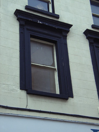 Terraced three-bay three-storey house, c.1800. Renovated, pre-1880, with rendered façade enrichments added. Renovated, post-1950, with ground floor remodelled. Renovated, pre-1993, with replacement shopfront inserted to ground floor. Pitched slate roof with clay ridge tiles, rendered chimney stacks having stringcourses, and cast-iron rainwater goods on rendered eaves having iron ties. Rendered, ruled and lined walls with rendered, ruled and lined bas-relief piers to ends. Square-headed window openings with cut-stone sills, moulded rendered surrounds, pre-1880, to first floor having panelled (hollow) outer pilasters incorporating consoles supporting entablatures, and one-over-one timber sash windows. Replacement timber shopfront, pre-1993, to ground floor with pilasters, fixed-pane display windows, glazed timber double doors having overlight, and fascia. Interior with timber panelled shutters to window openings. Street fronted with concrete footpath to front.
