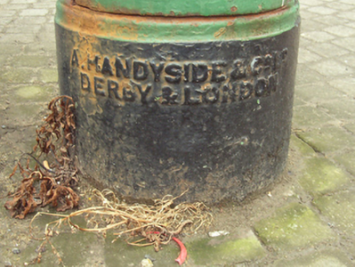 A "pillar box" post box supplied by A. [Andrew] Handyside and Company (established 1848) of Derby and London representing an interesting example of mass-produced cast-iron work making a pleasing, if largely inconspicuous visual statement in Main Street North with embellishments identifying the artistic potential of the composition including the Queen Victoria (1819-1901; r. 1837-1901) royal cipher of additional significance as an imprinted reminder of the period when Ireland formed part of the British Empire.