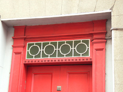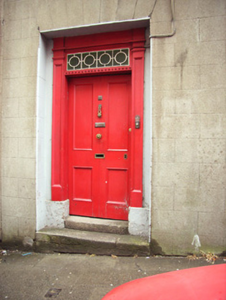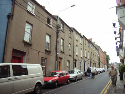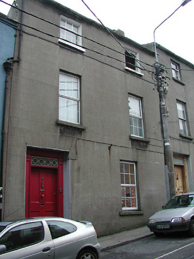 Terraced two-bay three-storey house, between 1830-40, possibly over basement. Mostly refenestrated, pre-1993. Now in commercial use to ground floor. One of a group of six. Pitched slate roof with clay ridge tiles, rendered (shared) chimney stack over red brick construction having stepped capping supporting terracotta pots, rendered coping, and cast-iron rainwater goods on rendered eaves having iron ties. Rendered, ruled and lined walls. Square-headed window openings with cut-granite sills, and replacement uPVC casement windows, pre-1993, retaining three-over-six timber sash windows to top floor. Square-headed door opening in square-headed recess with two cut-granite steps, timber panelled (hollow) pilaster doorcase on cut-granite padstones, and timber panelled door having decorative overlight. Interior with timber panelled shutters to window openings. Street fronted with concrete footpath to front [VO/SS].