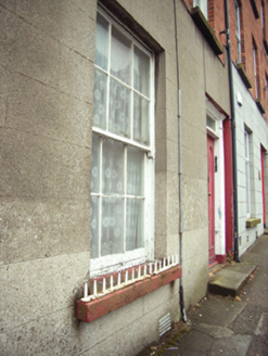 An elegantly composed house of the middle size reputedly built by the Rowe family of Ballycross House as one of a group of five identical units (with 15503110 - 111, 113 - 114) making a positive contribution to the streetscape value of Rowe Street Lower on account of attributes including the vertical emphasis of the massing contributing to a roofline corresponding with or following the slight incline or slope in the street, the uniform proportions on each floor, the construction in a combination of render with red brick producing a lively visual palette, the understated decorative programme limited to a Classically-expressed doorcase displaying expert joinery, and so on. Having been well maintained, the house continues to project an early aspect with the elementary composition surviving in place together with most of the historic or original fabric, both to the exterior and to the interior, thereby upholding the character of the collective ensemble in the street scene.