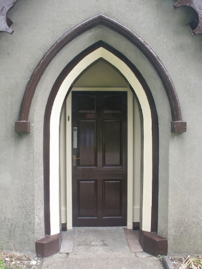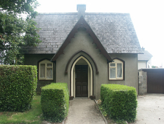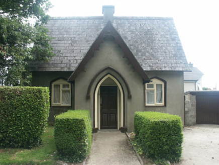 Detached three-bay single-storey gate lodge, extant 1853, on a cruciform plan centred on single-bay single-storey gabled projecting open porch; single-bay (single-bay deep) single-storey central return (east). Part refenestrated, ----. Now disused. Pitched slate roof on a cruciform plan centred on pitched (gabled) slate roof (porch) with lichen-spotted clay ridge tiles centred on rendered chimney stack having stepped capping supporting terracotta pots, decorative timber bargeboards to gables on "Cavetto"-detailed timber purlins, and cast-iron rainwater goods retaining cast-iron downpipes. Rendered walls. Pointed-arch central opening with cut-granite threshold, and concealed dressings having chamfered rebated reveals with hood moulding on monolithic label stops. Square-headed central door opening with monolithic surround framing replacement glazed timber panelled door. Triangular-headed flanking window openings with concealed dressings having chamfered reveals framing replacement timber casement windows. Triangular-headed window openings to gables to side elevations with cut-granite sills, and concealed dressings framing two-over-two timber sash windows. Set back from line of street at entrance to grounds of Saint Peter's College.