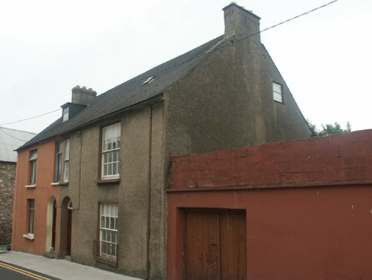 Semi-detached two-bay two-storey house with dormer attic, extant 1840, on a square plan. One of a pair. Pitched fibre-cement slate roof with clay ridge tiles, rendered chimney stack having capping supporting yellow terracotta pots, central rooflight to front (north) pitch, and cast-iron rainwater goods on rendered eaves retaining cast-iron downpipes. Roughcast battered walls. Segmental-headed door opening (east) with step threshold, and concealed dressings having splayed reveals framing timber panelled door having overlight. Square-headed window opening in shared square-headed recess (first floor) with cut-granite sill, and concealed dressings framing four-over-four timber sash window. Square-headed window openings (west) with cut-granite sills, and concealed dressings framing eight-over-eight timber sash windows. Interior including (ground floor): vestibule; square-headed door opening into hall with glazed timber panelled door having sidelights below overlight; hall retaining carved timber surrounds to door openings framing timber panelled doors, staircase on a dog leg plan with timber balusters supporting timber banister terminating in turned timber newels, and carved timber surrounds to door openings to landing framing timber panelled doors; room (north-west) retaining carved timber surround to door opening framing timber panelled door with carved timber surround to window opening framing timber panelled shutters; room (south-west) retaining carved timber surround to door opening framing timber panelled door with carved timber surround to window opening framing timber panelled shutters; and carved timber surrounds to door openings to remainder framing timber panelled doors with timber panelled shutters to window openings. Street fronted with concrete footpath to front.