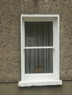 Terraced two-bay two-storey house, c.1850, possibly incorporating fabric of earlier house, pre-1840, on site. Reroofed and refenestrated, c.1950. One of a group of ten. Pitched (shared) roof with replacement fibre-cement slate, c.1950, clay ridge tiles, red brick Running bond (shared) chimney stacks, rendered coping to party wall, and iron rainwater goods on rendered eaves having iron ties retaining shared cast-iron ogee hopper and downpipe. Roughcast walls on rendered plinth. Square-headed window openings with cut-stone sills, and replacement one-over-one timber sash windows, c.1950. Square-headed door opening with cut-granite padstones, and timber panelled door having overlight. Street fronted with concrete footpath to front.