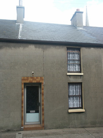 Terraced two-bay two-storey house, between 1865-70. Refenestrated, c.1950. Reroofed, post-1996. One of a group of eleven. Pitched (shared) roof with replacement artificial slate, post-1996, clay ridge tiles, rendered (shared) chimney stacks, and cast-iron rainwater goods on rendered eaves having iron ties. Rendered, ruled and lined walls. Square-headed window openings with cut-granite sills, and replacement one-over-one timber sash windows, c.1950. Square-headed door opening with step, tiled surround, pre-1992, and replacement glazed aluminium door, pre-1992. Street fronted with concrete footpath to front [VO].