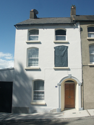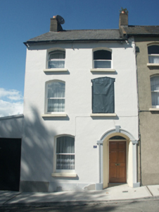 Terraced two-bay two-storey townhouse with half-dormer attic, built 1898, on a rectangular plan. Undergoing renovation, 2005. One of a terrace of three. Pitched slate roof with clay ridge tiles, coping to gable with rendered chimney stack to apex having capping supporting terracotta pots, and cast-iron rainwater goods on rendered eaves retaining cast-iron octagonal or ogee hopper and downpipe. Rendered wall to front (south) elevation on rendered plinth; roughcast surface finish (remainder). Segmental-headed door opening (east) with moulded rendered surround centred on keystone having splayed reveals framing timber panelled door having overlight. Camber-headed window openings with cut-granite sills, and concealed dressings framing one-over-one timber sash windows. Street fronted with concrete footpath to front.