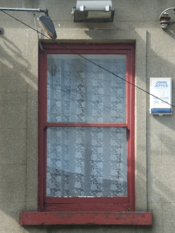 Terraced three-bay two-storey house, built 1913, on a rectangular plan with shopfront to ground floor. Renovated, 2003-4. Pitched fibre-cement slate roof with ridge tiles, coping to gables with red brick Running bond (east) or grey brick Running bond (west) chimney stacks having stepped capping, and replacement uPVC rainwater goods on rendered eaves. Rendered, ruled and lined wall to front (north) elevation; roughcast surface finish (remainder). Shopfront to ground floor with timber panelled double doors. Square-headed window openings (first floor) with concrete sills, and rendered "bas-relief" surrounds framing one-over-one timber sash windows. Street fronted with concrete footpath to front.