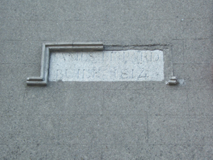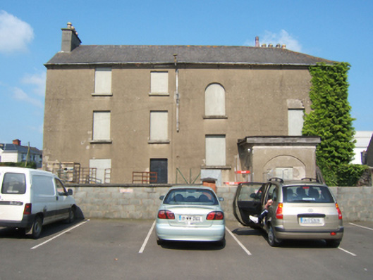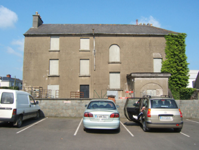 Archival Description [Demolished 2007]: Detached four-bay three-storey house, dated 1814, on an L-shaped plan originally three-bay three-storey on a T-shaped plan centred on single-bay single-storey gabled projecting porch to ground floor with single-bay (single-bay deep) two-storey lean-to central return (north); four-bay (west) or single-bay (east) three-storey side elevations. In alternative use, 1840. "Improved", pre-1904, producing present composition. Now disused. Hipped slate roof on an L-shaped plan abutting lean-to slate roof (north); pitched (gabled) slate roof (porch), clay ridge tiles, rendered chimney stacks having stepped capping supporting terracotta or yellow terracotta tapered pots, decorative timber bargeboards to gable (porch), and remains of cast-iron rainwater goods on rendered red brick header bond stepped eaves retaining cast-iron downpipes. Part creeper- or ivy-covered rendered, ruled and lined walls; roughcast surface finish to rear (north) elevation. Square-headed central window opening (porch) with cut-granite sill, and concealed dressings with hood moulding framing boarded-up fitting. Square-headed opposing door openings ("cheeks") with concealed dressings framing timber panelled doors. Square-headed window openings in tripartite arrangement centred on square-headed window openings with cut-granite sills, and concealed dressings framing boarded-up fittings. Street fronted with concrete footpath to front.
