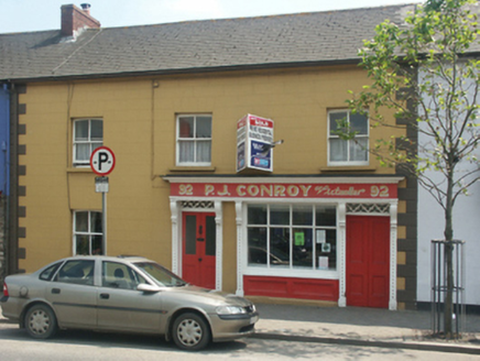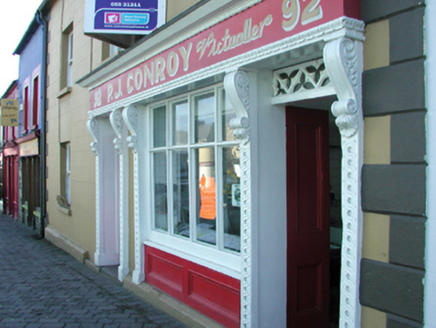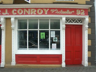 A house representing an important component of the built heritage of Gorey with the architectural value of the composition confirmed by such attributes as the compact rectilinear plan form; and the slight diminishing in scale of the openings on each floor producing a feint graduated visual impression. Having been well maintained, the elementary form and massing survive intact together with substantial quantities of the original fabric, both to the exterior and to the interior, including 'an exceptionally good [shopfront] with highly decorated pilasters' making a pleasing visual statement in Main Street at street level (Craig and Garner 1973, 20). NOTE: Occupied (1901; 1911) by James Redmond (d. 1914), 'Victualler late of 92 Main Street Gorey County Wexford' (Calendars of Wills and Administrations 1915, 610).