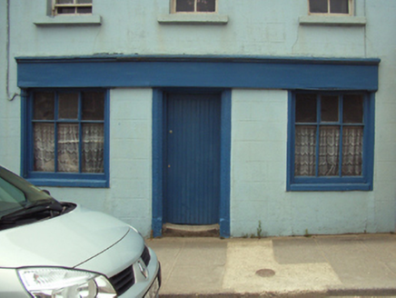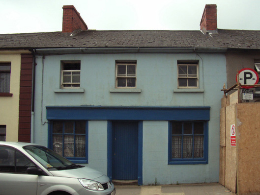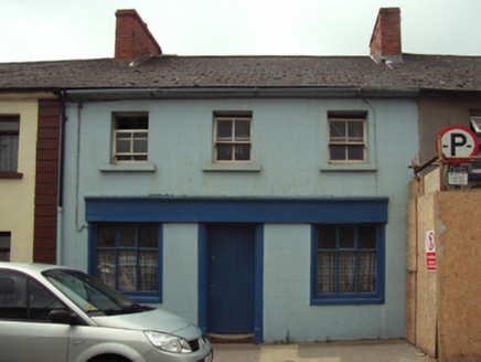 Terraced three-bay two-storey house, extant 1904, on a rectangular plan with shopfront to ground floor; two-bay two-storey rear (west) elevation. Now disused. Pitched fibre-cement slate roof with clay ridge tiles, red brick Running bond chimney stacks having stepped capping, and cast-iron rainwater goods on rendered eaves retaining cast-iron downpipe. Rendered, ruled and lined wall to front (east) elevation; part creeper- or ivy-covered rendered wall to rear (west) elevation. Shopfront to ground floor on a symmetrical plan centred on cut-granite surround having chamfered reveals framing timber boarded door. Square-headed window openings (first floor) with cut-granite sills, and concealed dressings framing two-over-two timber sash windows. Square-headed window openings to rear (west) elevation with cut-granite sills, and concealed dressings framing six-over-three timber sash windows having exposed sash boxes. Street fronted with concrete footpath to front.