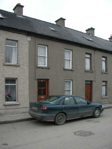 Terraced two-bay two-storey house with dormer attic, dated 1882, on a rectangular plan. One of a terrace of six. Pitched fibre-cement slate roof with clay ridge tiles, rendered chimney stacks having capping supporting terracotta pots, central rooflight to front (east) pitch, and cast-iron rainwater goods on slate flagged eaves. Rendered, ruled and lined walls. Square-headed door opening (south) with cut-granite threshold, and concealed dressings framing glazed timber panelled door. Square-headed window openings with cut-granite sills, and concealed dressings framing one-over-one timber sash windows. Street fronted with concrete footpath to front.