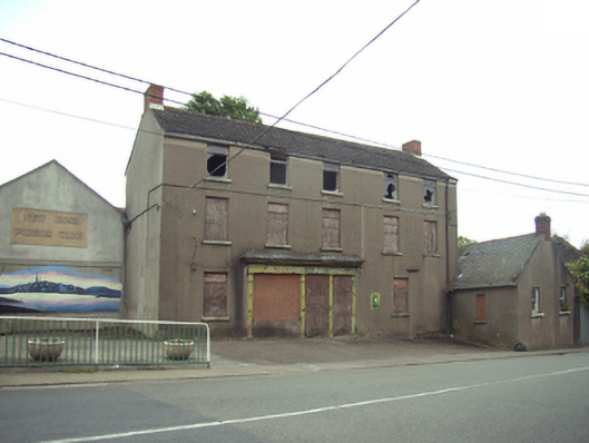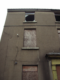 Detached five-bay three-storey house, extant 1840, on a rectangular plan with shopfront to ground floor. Occupied, 1901. Vacant, 1911. Renovated, ----. Now disused. Replacement pitched profiled tile roof with concrete ridge tiles, red brick Running bond chimney stacks having stepped capping, and remains of cast-iron rainwater goods on timber box eaves retaining cast-iron downpipe. Rendered, ruled and lined walls. Timber shopfront to ground floor. Square-headed window openings (upper floors) with cut-granite sills, and concealed dressings with fittings now boarded up. Street fronted on a corner site with concrete footpath to front.
