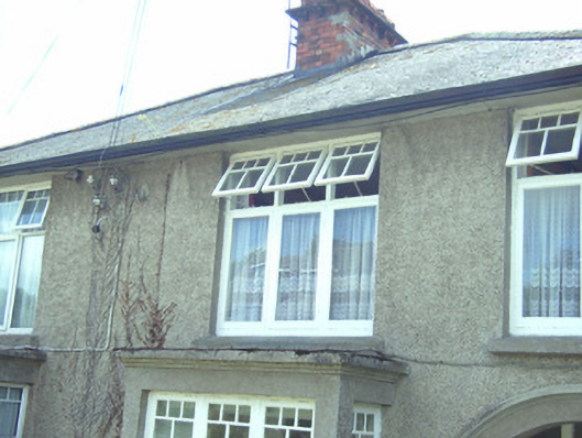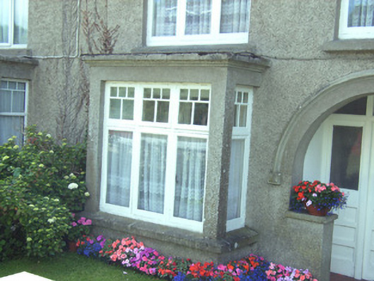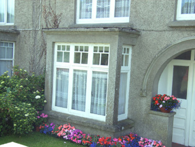 A pleasant house of modest size built as one of a pair (second in pair not included in survey) forming part of a group of six identical units (with 15605260) representing an element of the interwar domestic architectural heritage of New Ross and the environs. Individual attributes identifying a pleasing architectural design aesthetic redolent of the period of construction include the box bay windows incorporating pretty glazing panels, the expressed entrance, the juxtaposition of muted Classical and Tudor-influenced detailing, and so on. Having been very well maintained, the house remains as one of the last in the group to present an early aspect, thereby upholding the character or integrity of an ensemble making a pleasing impression on an elevated position overlooking the River Barrow.