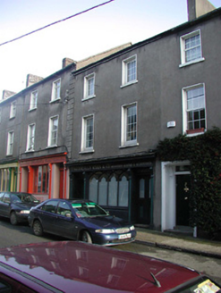 Terraced two-bay three-storey house, c.1850, with shopfront to ground floor. Refenestrated. Now in use as offices to ground floor. One of a group of four forming part of a group of eight. Pitched (shared) slate roof with clay ridge tiles, rendered (shared) chimney stacks, and iron rainwater goods on rendered eaves. Rendered walls with rendered channelled pier to end. Square-headed window openings with cut-stone sills, and replacement uPVC casement windows. Timber shopfront to ground floor on a symmetrical plan with panelled (hollow) pilasters on padstones having panelled (hollow) consoles, fixed-pane (four-light) timber display window having carved timber mullions rising into Churchwarden tracery, glazed timber panelled double doors on cut-granite step having overlight, timber panelled door to house on cut-granite step having overlight, and fascia having slate-lined cornice. Interior with timber panelled shutters to window openings. Street fronted with concrete footpath to front.