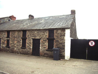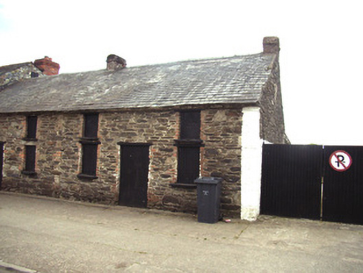 End-of-terrace three-bay two-storey house, c.1825, originally terraced. Now in use as outbuilding. One of a pair. Pitched (shared) slate roof with clay ridge tiles, red brick Running bond squat chimney stacks having stringcourses, section of rendered coping, and no rainwater goods on squared rubble stone eaves. Semi-coursed random rubble stone walls probably originally rendered or lime rendered. Square-headed window openings with cut-stone sills, red brick dressings, and timber lintels (now boarded-up). Square-headed door opening with red brick dressings, and timber lintel (now boarded-up). Street fronted with concrete footpath to front.