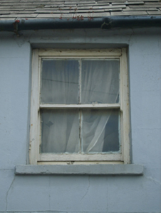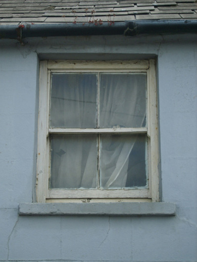 Terraced two-bay single-storey house with half-dormer attic, extant 1840, on a square plan. Now disused. Pitched slate roof with terracotta ridge tiles, and cast-iron rainwater goods on rendered eaves retaining cast-iron octagonal or ogee hopper and downpipes. Rendered, ruled and lined battered walls. Square-headed door opening with rendered "bas-relief" block-and-start surround centred on keystone framing timber boarded door having overlight. Square-headed window openings with rendered sills, and concealed dressings framing six-over-six (ground floor) or two-over-two (half-dormer attic) timber sash windows having part exposed sash boxes. Road fronted with concrete footpath to front.
