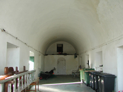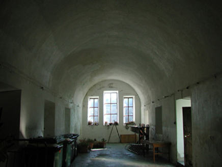 Detached five-bay single-storey ordnance store, extant 1840, on a rectangular plan. Reconstructed, 1939, to accommodate alternative use. Decommissioned, 1986. Now disused. One of a pair. Replacement pitched corrugated-asbestos roof with lichen-covered concrete ridge tiles, lichen-spotted cut-limestone coping to gables, and no rainwater goods surviving on timber eaves boards on roughcast eaves. Roughcast battered walls on rendered plinth with drag edged tooled cut-limestone quoins to corners. Square-headed central door opening with concealed dressings framing timber boarded door. Square-headed flanking window openings with concrete or cut-granite sills, and concealed dressings framing timber casement windows. Limewashed barrel vaulted interior. Set in shared grounds including relandscaped parade ground.