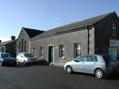 Detached five-bay single-storey armourer's workshop with half-attic, extant 1840, on a rectangular plan originally five-bay two-storey. Burnt, 1922. In ruins, 1933. Reconstructed, 1939, producing present composition. Decommissioned, 1986. Now disused. Pitched fibre-cement slate roof with ridge tiles, and replacement uPVC rainwater goods on eaves boards on roughcast eaves. Roughcast walls on rendered plinth with rendered quoins to corners. Square-headed central door opening with cut-granite step threshold, and rendered "bas-relief" surround centred on keystone framing timber boarded door. Square-headed flanking window openings with concrete or cut-granite, and concealed red brick block-and-start surrounds framing timber casement windows. Square-headed window openings (gables) with lichen-spotted sills, and red brick block-and-start surrounds framing timber casement windows. Set in shared grounds including relandscaped parade ground.