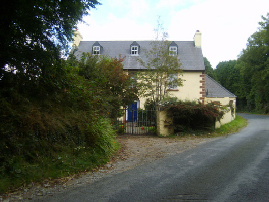 Detached three-bay two-storey farmhouse with dormer attic, extant 1839, on a rectangular plan. Burnt, 1980. Repaired, 1981. Replacement pitched artificial slate roof including gablets to window openings to dormer attic, ridge tiles, cement rendered chimney stacks having corbelled stepped stringcourses below capping supporting terracotta pots, and uPVC rainwater goods on timber box eaves with cast-iron rainwater goods to rear (east) elevation on roughcast slate flagged eaves retaining cast-iron downpipes. Rendered walls on rendered plinth; roughcast surface finish to rear (east) elevation. Segmental-headed central door opening approached by flight of three cut-granite steps with concealed dressings framing replacement timber panelled door having fanlight. Square-headed window openings with cut-granite sills, and concealed dressings framing two-over-two timber sash windows. Square-headed window openings to rear (east) elevation centred on segmental-headed window opening with cut-granite sills, and concealed dressings framing two-over-two timber sash windows centred on timber casement window having overlight. Set in landscaped grounds perpendicular to road with piers to perimeter having capping supporting wrought iron double gates.