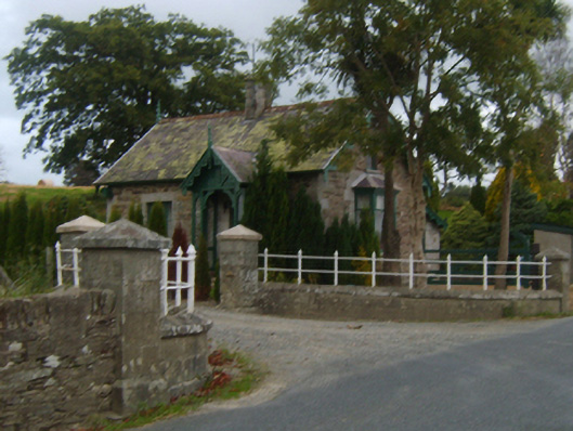 Gateway, extant 1901, on a symmetrical plan comprising pair of tuck pointed margined granite ashlar piers having pyramidal capping. Road fronted at entrance to grounds of Mount Saint Benedict.