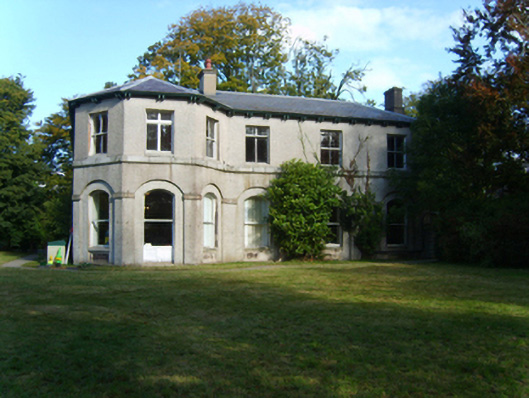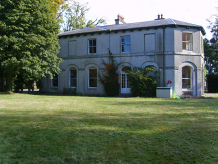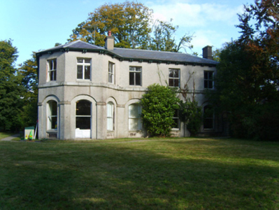 Detached five-bay two-storey house, built 1868, on a square plan; two-bay (north) or four-bay (south) two-storey side elevations. Occupied, 1901. Vacant, 1911. Adapted to alternative use, 2006. For sale, 2008. Hipped slate roof on a U-shaped plan with pressed or rolled lead ridges, cement rendered chimney stacks having "Cyma Recta"- or "Cyma Reversa"-detailed capping supporting terracotta octagonal pots, and cast-iron rainwater goods on paired timber consoles retaining cast-iron downpipes. Part creeper- or ivy-covered roughcast walls on cut-granite plinth. Segmental-headed window openings in segmental-headed recesses (ground floor) with cut-granite sills on panelled risers, and concealed red brick block-and-start surrounds framing one-over-one timber sash windows. Square-headed window openings (first floor) with cut-granite sills, and concealed red brick block-and-start surrounds framing two-over-two timber sash windows. Interior including (ground floor): vestibule (north) retaining encaustic tiled floor; segmental-headed door opening into hall with carved timber surround framing timber panelled double doors having overlight; hall retaining carved timber surrounds to door openings framing timber panelled doors, and moulded plasterwork cornice to ceiling; office (north-east) retaining carved timber surround to door opening framing timber panelled door with carved timber surround to opposing window opening framing timber panelled shutters, and picture railing below moulded plasterwork cornice to ceiling; dining room (north-west) retaining carved timber surround to door opening framing timber panelled door with carved timber surrounds to window openings framing timber panelled shutters, cut-veined black marble Classical-style chimneypiece, and picture railing below moulded plasterwork cornice to ceiling; bow-ended drawing room (south-west) retaining carved timber surrounds to door openings framing timber panelled doors with carved timber surrounds to window openings framing timber panelled shutters, cut-white marble Classical-style chimneypiece, and decorative plasterwork cornice to ceiling centred on decorative plasterwork ceiling rose; billiards room (south-east) retaining carved timber surrounds to door openings framing timber panelled doors with carved timber surrounds to window openings framing timber panelled shutters, cut-black marble Classical-style chimneypiece, and moulded plasterwork cornice to ceiling centred on decorative plasterwork ceiling rose; and (first floor): carved timber surrounds to door openings framing timber panelled doors with carved timber surrounds to window openings framing timber panelled shutters. Set in landscaped grounds.