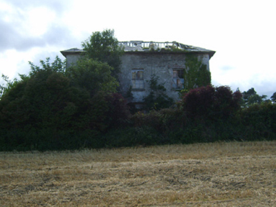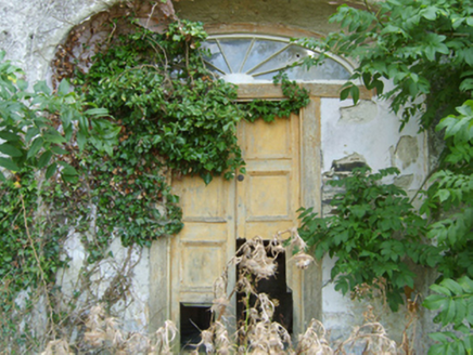 Detached three-bay two-storey over basement farmhouse with half-dormer attic, extant 1839, on a rectangular plan with single-bay full-height side elevations. Occupied, 1901; 1911. Now in ruins. Hipped slate roof on collared timber construction with remains of clay ridge tiles, red brick Running bond "wallhead" chimney stacks to rear (west) elevation having stringcourses below capping supporting yellow terracotta tapered pots, and no rainwater goods surviving on slightly overhanging slate flagged eaves retaining cast-iron downpipes. Part creeper- or ivy-covered lime rendered coursed rubble stone walls with concealed cut-granite flush quoins to corners; slate hung surface finish to side (south) elevation. Segmental-headed central door opening with overgrown threshold, timber doorcase with reeded monolithic mullions supporting reeded monolithic transom, and concealed dressings having concave reveals framing timber panelled double doors having oversailing fanlight. Square-headed window openings with cut-granite sills, and concealed red brick block-and-start surrounds framing six-over-six timber sash windows without horns with two-over-two timber sash windows to side elevations. Interior in ruins including (ground floor): central hall retaining timber surrounds to door openings framing timber panelled doors; and timber surrounds to door openings to remainder framing timber panelled doors with timber panelled shutters to window openings. Set in overgrown grounds.
