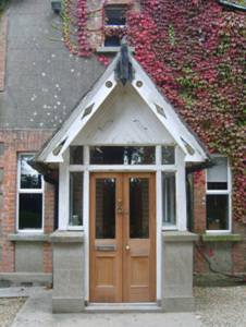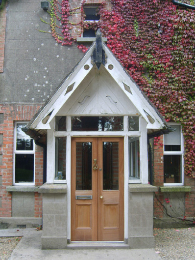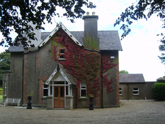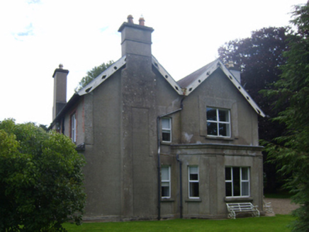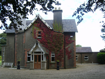 Detached three-bay single-storey double-pile Church of Ireland rectory with half-dormer attic, built 1870, on a T-shaped plan centred on single-bay full-height breakfront with single-bay single-storey gabled projecting porch; three-bay full-height rear (north) elevation. Occupied, 1901; 1911. Sold, 1968. Resold, 1985. Renovated, 1986. Pitched double-pile (M-profile) slate roof on a T-shaped plan centred on pitched (gabled) slate roof (breakfront); pitched (gabled) slate roof (porch), clay ridge tiles, paired rendered ruled and lined buttressed "wallhead" chimney stacks having stepped capping supporting yellow terracotta pots, perforated timber bargeboards to gables on timber purlins, and cast-iron rainwater goods on exposed timber rafters retaining cast-iron octagonal or ogee hoppers and downpipes. Part creeper- or ivy-covered rendered, ruled and lined walls on cut-granite chamfered cushion course on rendered plinth with red brick quoins to corners. Segmental-headed central door opening with red brick block-and-start surround framing glazed timber panelled double doors having overlight. Square-headed window openings with cut-granite sills, and red brick block-and-start surrounds framing replacement uPVC casement windows replacing one-over-one timber sash windows. Square-headed window openings (side elevations) with cut-granite sills, and red brick block-and-start surrounds framing replacement uPVC casement windows replacing one-over-one timber sash windows. Set in landscaped grounds.
